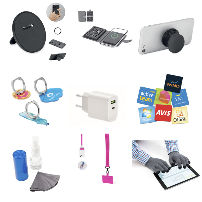 Accesorios móvil y tablet personalizados, muchas opciones en stock y fabricación a medida. Con marcaje de logotipos. Consulta nuestro catálogo, pídenos información: comercial@kairel.com Tel 91 535 33 72 / 649 49 69 91