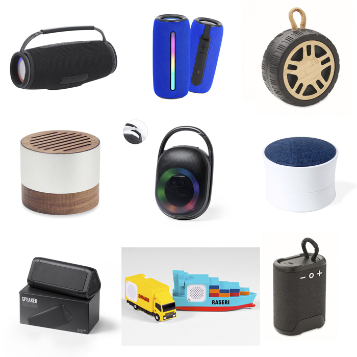 Altavoces promocionales personalizados, muchas opciones en stock y fabricación a medida. Con marcaje de logotipos. Consulta nuestro catálogo, pídenos información: comercial@kairel.com Tel 91 535 33 72 / 649 49 69 91