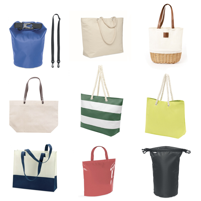 Bolsas de playa personalizadas, muchas opciones en stock y fabricación a medida. También bolsas estancas e impermeables. Con marcaje de logotipos. Consulta nuestro catálogo, pídenos información: comercial@kairel.com Tel 91 535 33 72 / 649 49 69 91