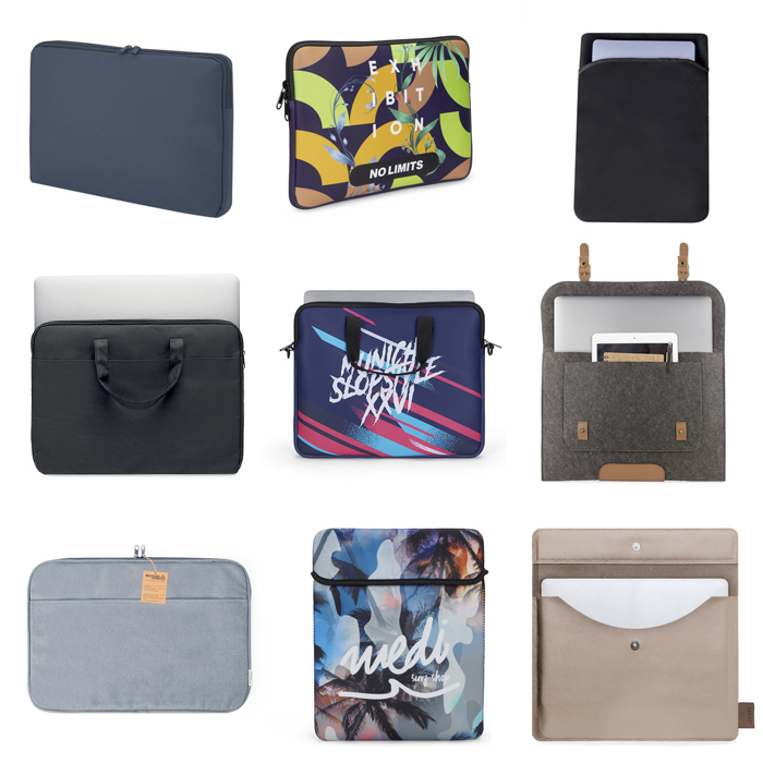 Fundas para portátil promocionales personalizadas, muchas opciones en stock y fabricación a medida. Con marcaje de logotipos. Consulta nuestro catálogo, pídenos información: comercial@kairel.com Tel 91 535 33 72 / 649 49 69 91