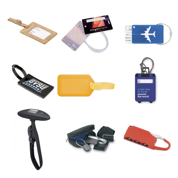 Identificadores y accesorios para maletas personalizados promocionales, muchas opciones en stock y fabricación a medida. Con marcaje de logotipos. Consulta nuestro catálogo, pídenos información: comercial@kairel.com Tel 91 535 33 72 / 649 49 69 91