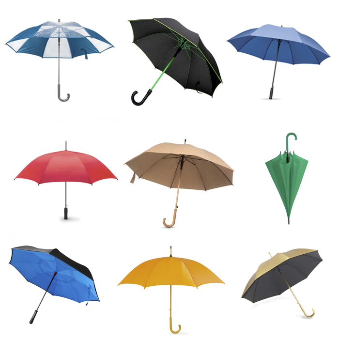 Paraguas promocionales personalizados, muchas opciones en stock y fabricación a medida. Con marcaje de logotipos. Consulta nuestro catálogo, pídenos información: comercial@kairel.com Tel 91 535 33 72 / 649 49 69 91
